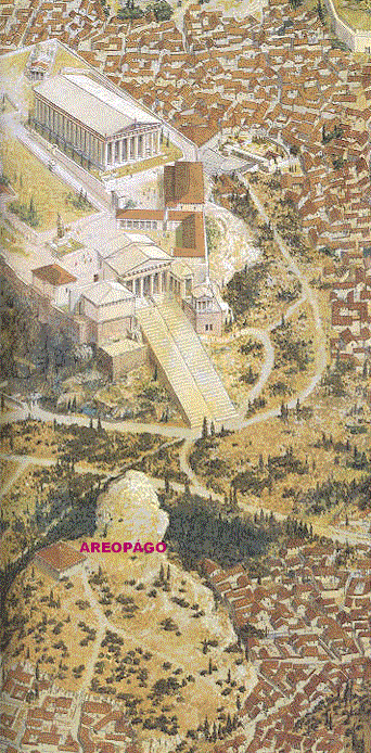 Hacia el 950 antes de Cristo la monarquía fue sustituida en Atenas por el gobierno de la aristocracia. Cada diez años se elegían tres arcontes, magistrados con funciones de gobierno y que eran: el basileus o arconte rey, encargado de las funciones religiosas, el polemarco, que dirigía el ejercito y el arconte-epónimo con jurisdicción en cuestiones civiles. A lo largo de los siguientes siglos el poder de la aristocracia decreció para pasar a manos de los ciudadanos. En el 683 el poder de los arcontes se limitó a un año y se aumentó el número a 10.Aunque elegidos por la Asamblea popular, los arcontes al acabar su mandato ingresaban en el Consejo del Areópago, órgano consultivo del propio arcontado al  tiempo que tribunal para delitos de sangre. Era sumamente conservador y sus miembros ocupaban el cargo de por vida. Con las reformas de Solón (arconte elegido en el 594) se creó el Consejo de los 400 que sustituiría al Consejo del Areópago en la labor de preparar el orden del día de la Asamblea popular ateniense. Posteriormente Clístenes (arconte en el 508 a de Cristo) sustituyó la antigua distribución de la población ática -cuatro tribus hereditarias- por un sistema de 10 tribus basado en un criterio territorial; cada una aportaba 50 hombres al Consejo (Boulé), que pasó de tener 400 miembros a tener 500, dando lugar a la aparición del Consejo de lo 500. Más tarde, en el 487, se aprobó una ley que especificaba que los candidatos al arcontado, en lugar de elegirlos, debían ser designados por sorteo con lo que limitó aún más el poder del Consejo del Areópago. Al final, solamente atendía de cuestiones relacionadas con los delitos de sangre, residiendo el auténtico poder en la Asamblea popular.